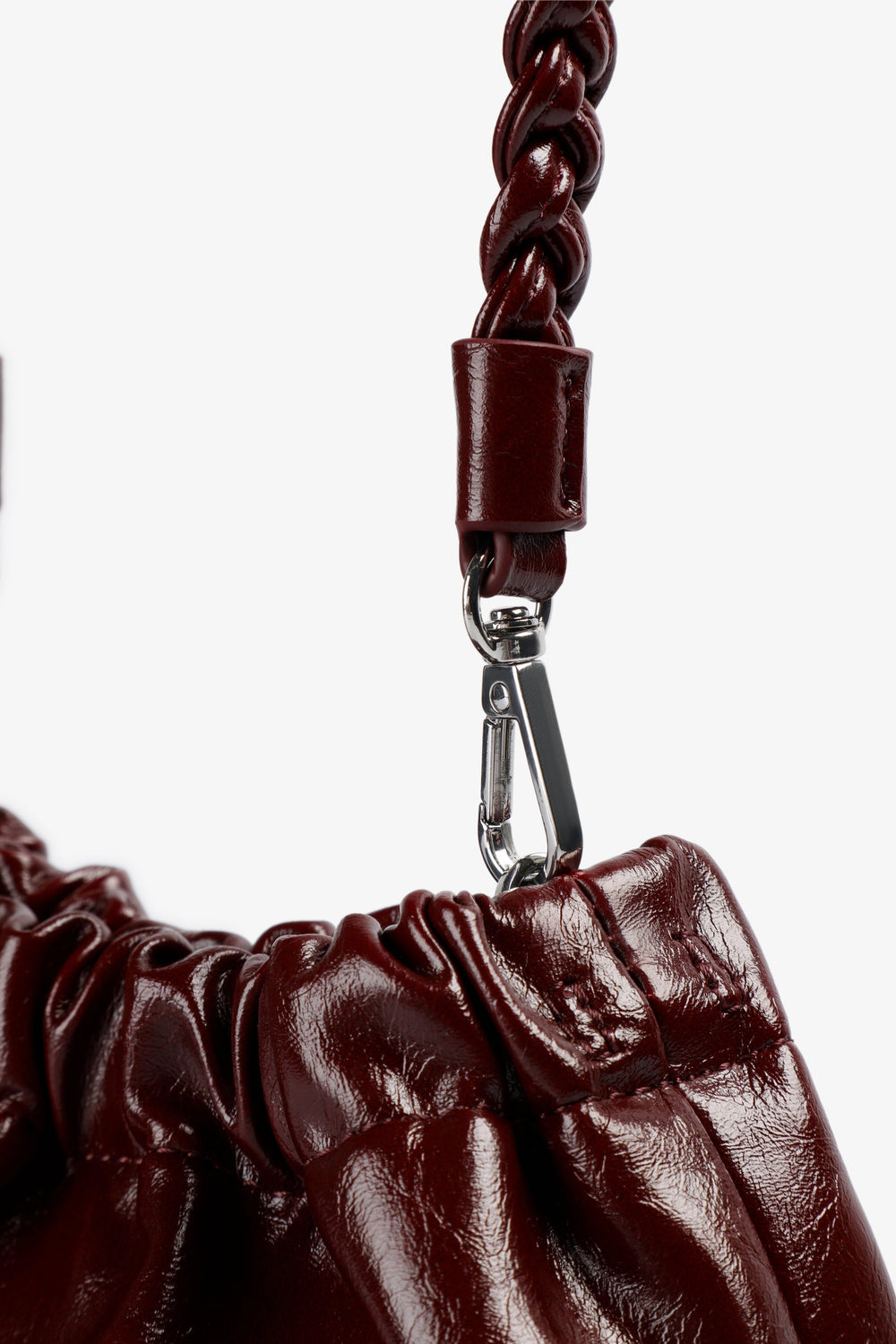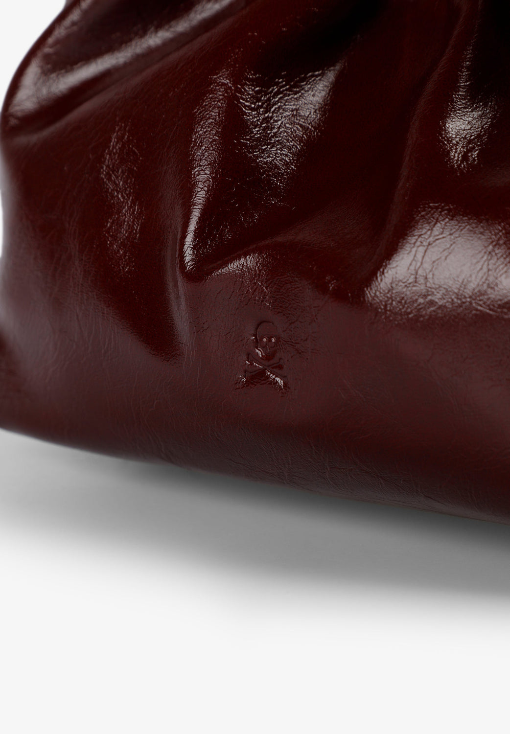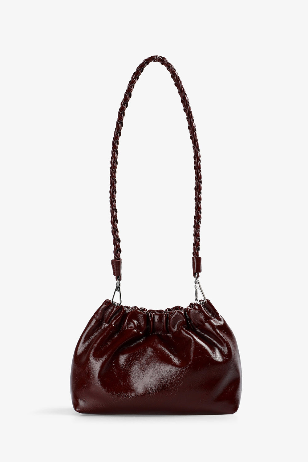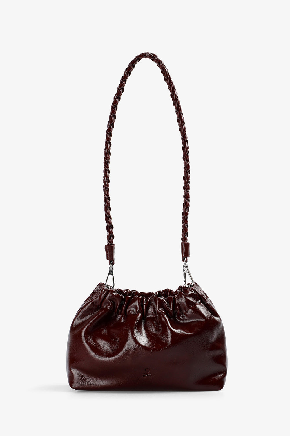 Handtas van PU. Dubbel afneembaar hengsel. Knoopsluiting met magneet. Gegraveerd logo op de voorkant.