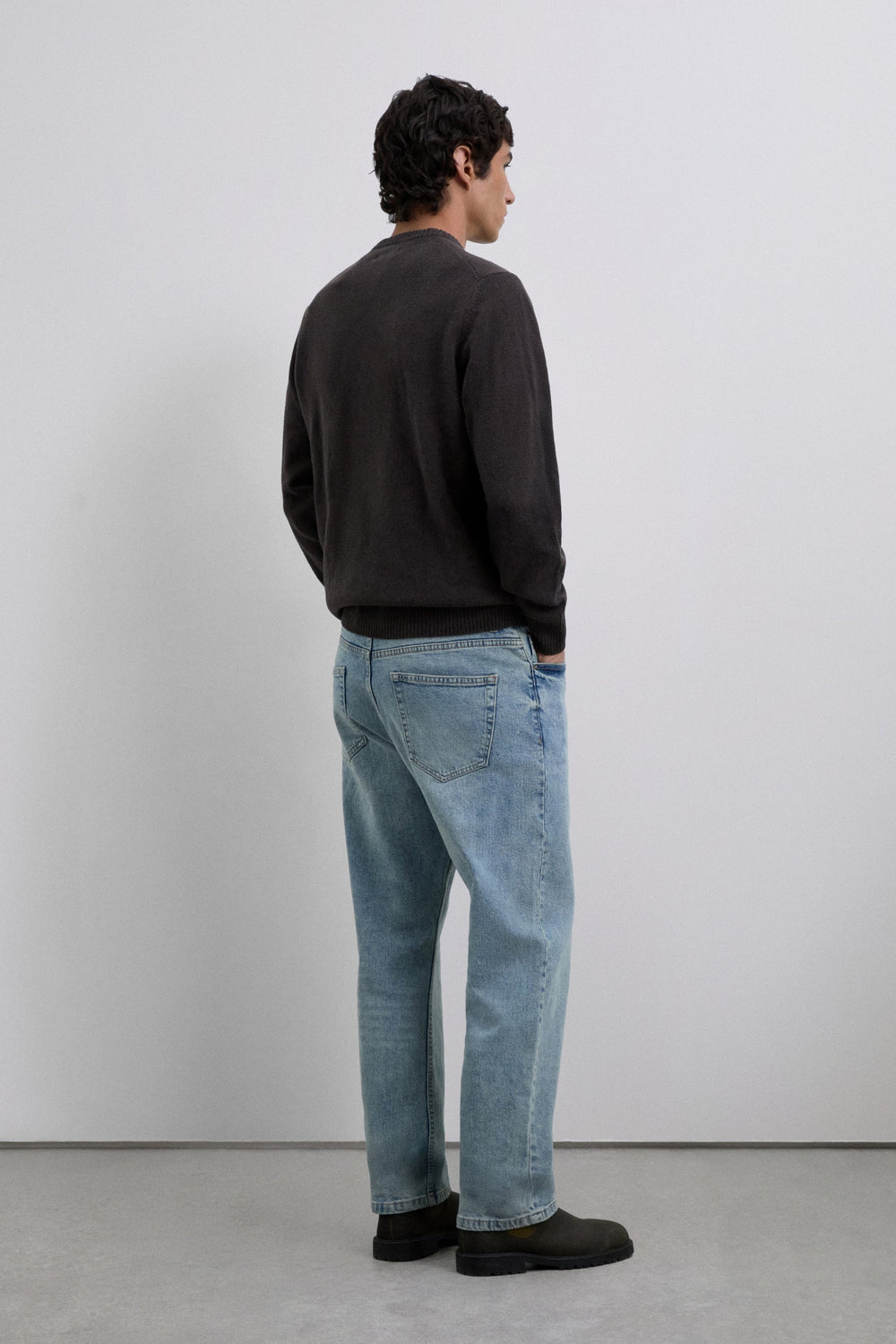 Jeans gemaakt van BCI-katoen met lichte stretch. Regular fit, sluiting met knoop en rits, voor- en achterzakken. Riemlussen op de tailleband.