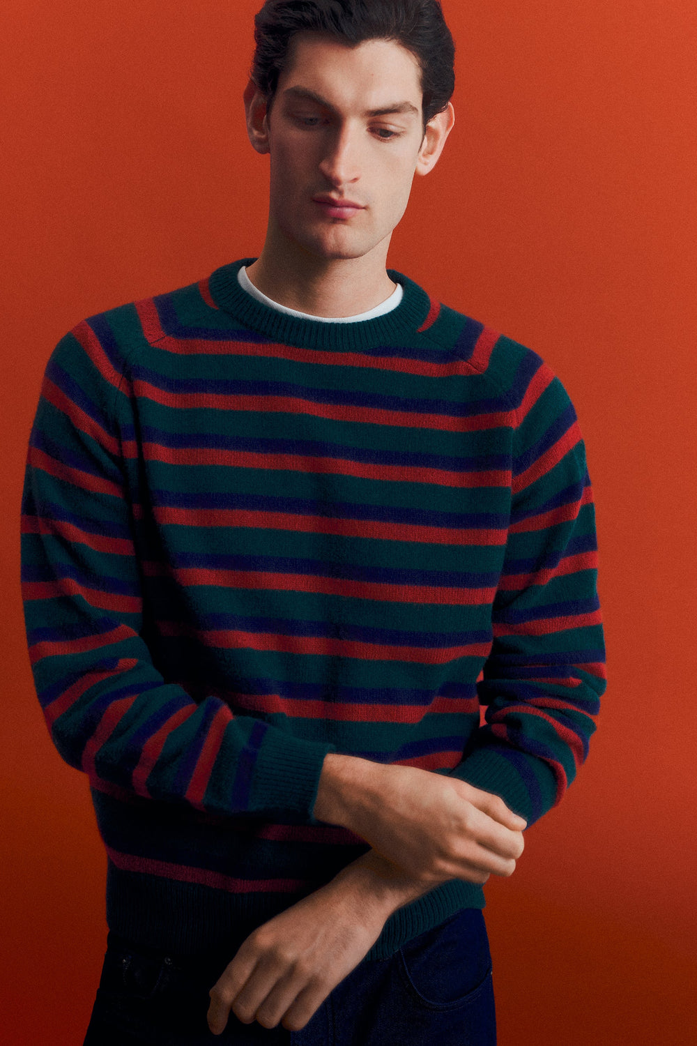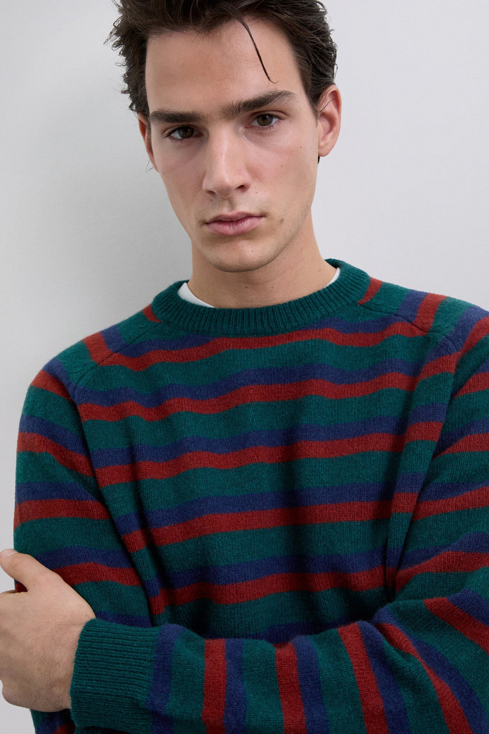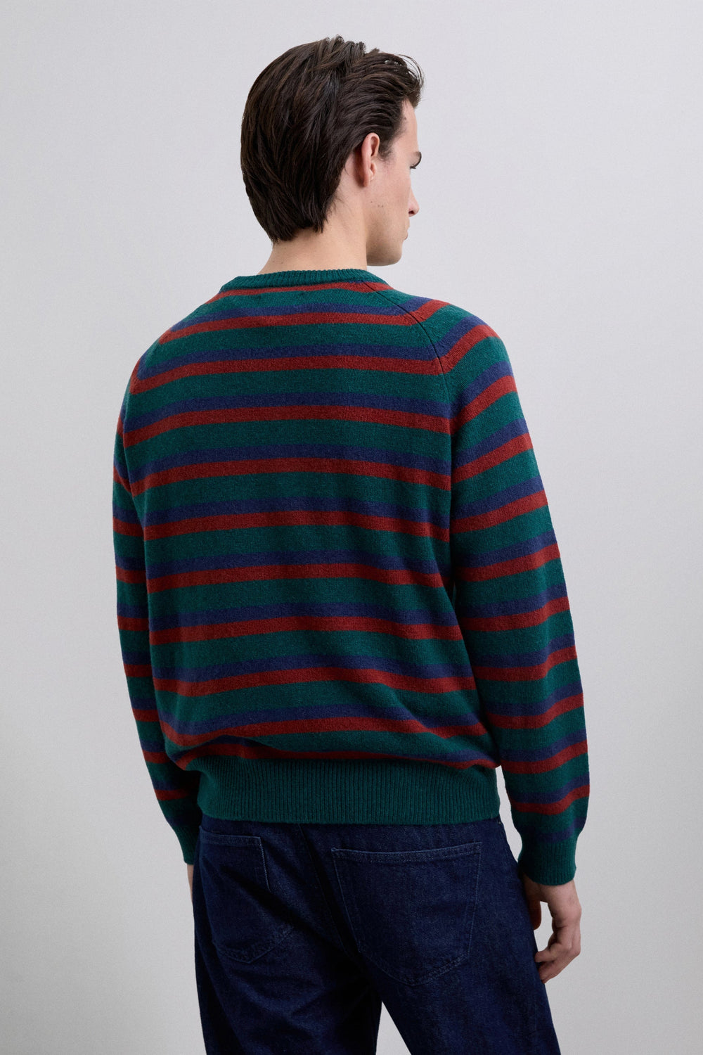 Trui gemaakt van wol. Gestreepte print. Regular fit. Ronde hals. Lange mouw. Ribboorden.