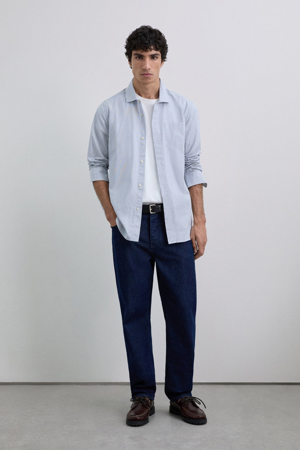 Jeans gemaakt van een katoenmix. Cropped, sluiting met knoop en rits, voor- en achterzakken. Riemlussen op de tailleband.