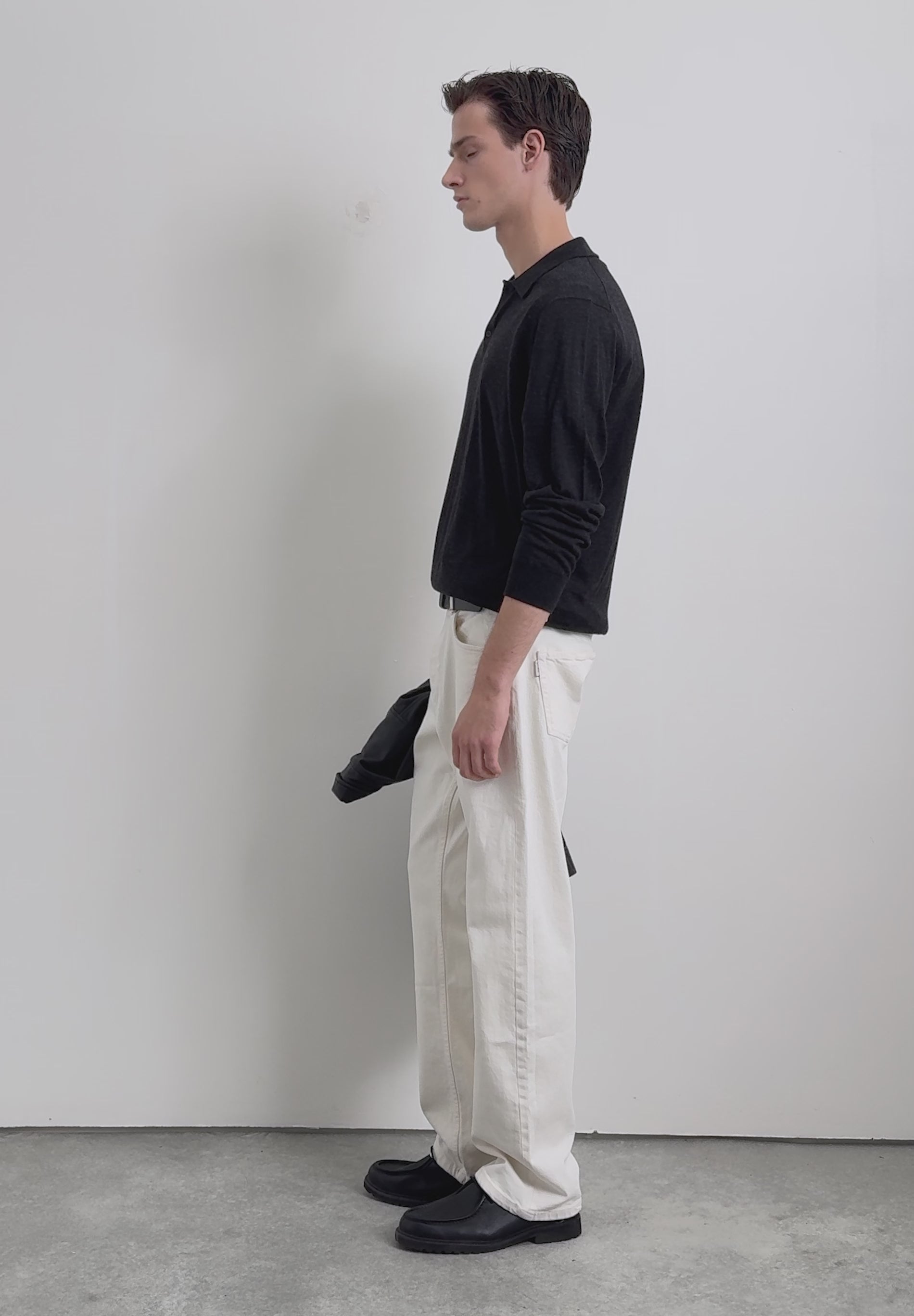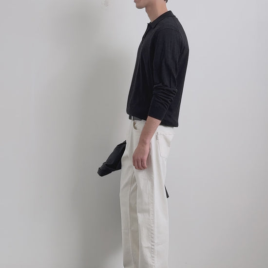Sweater made of 100% wool. Long sleeves. Polo shirt collar. Button fastening.